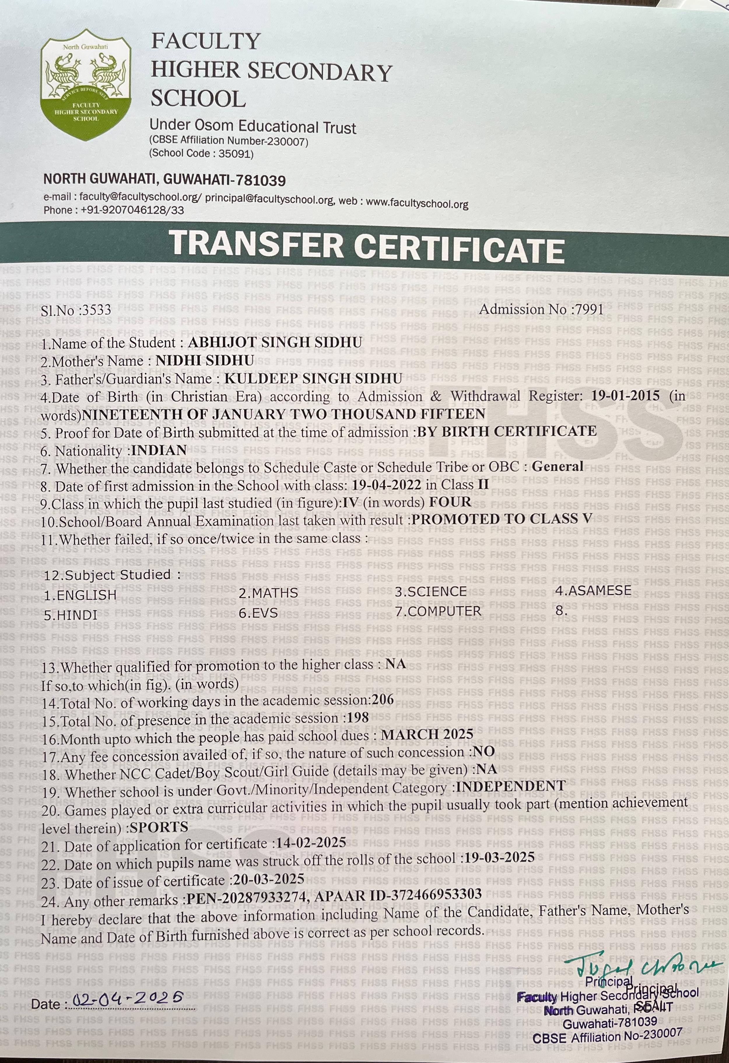 | 1 | ABHIJOT SINGH SIDHU | Class 5 | 2025 | Download |