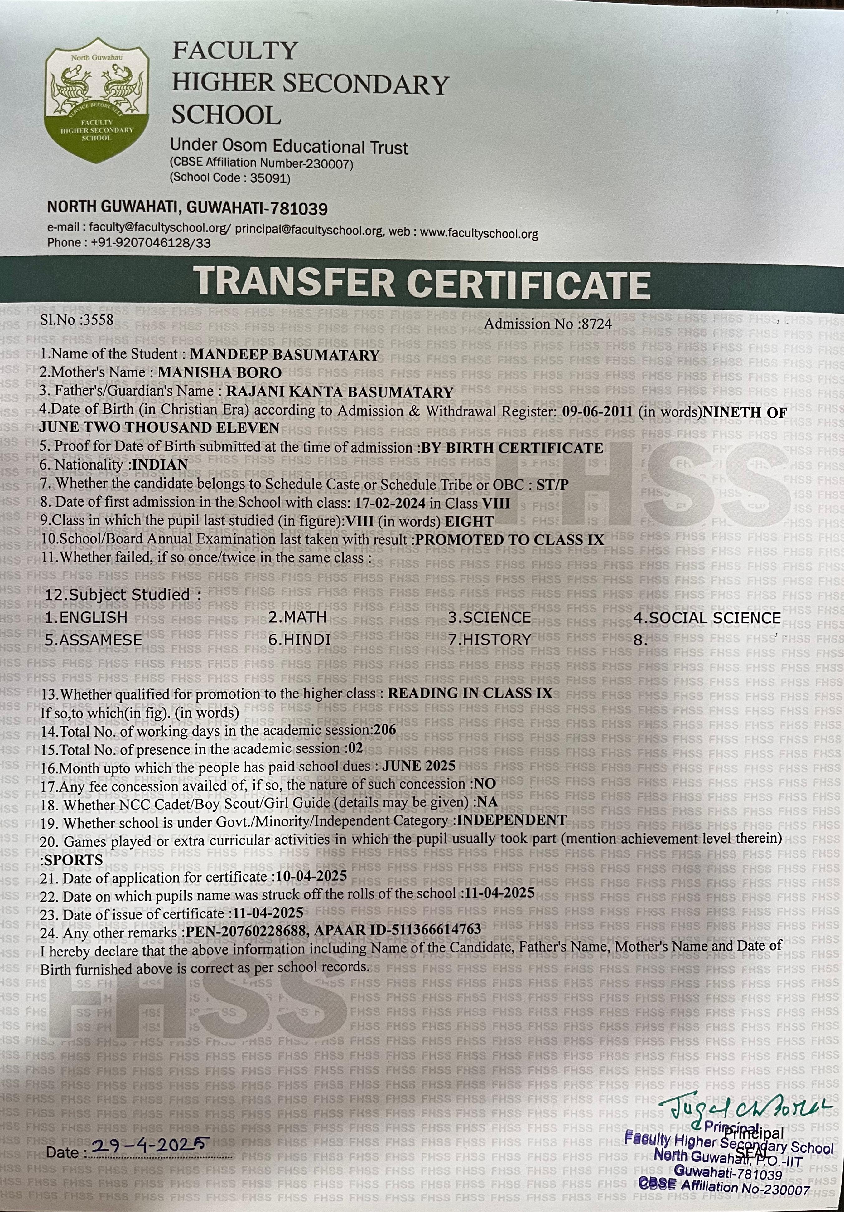 | 9 | MANDEEP BASUMATARY | Class 9 | 2025 | Download |